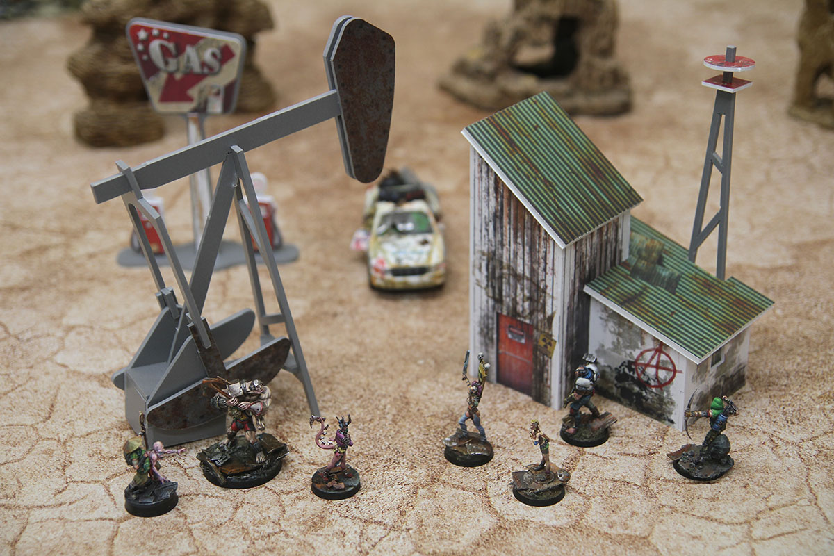 Esta línea, aunque no es exclusiva, ha sido realizada en colaboración con nosotros. Las medidas de las coberturas, altura de los edificios y demás están pensados para las reglas de Punkapocalyptic. Los elementos siguen una estética perfecta para nuestro juego y, de hecho, alguna de nuestras miniaturas está en las portadas de los packs a la venta.