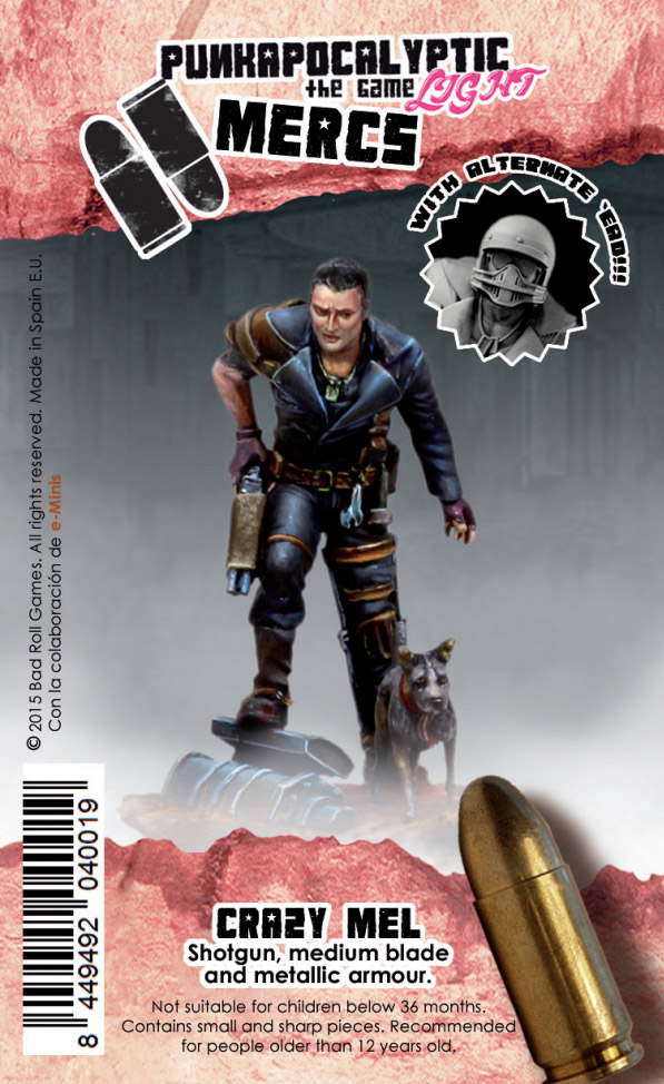 This is the first miniature for our new Punkapocalyptic Light range made of high-quality resin, manufactured by RN Estudio. And superbly painted, as usual, by the Bigchild team. It includes his dog Meatball, an additional head with helmet and the posibility to have him with or without a machete.