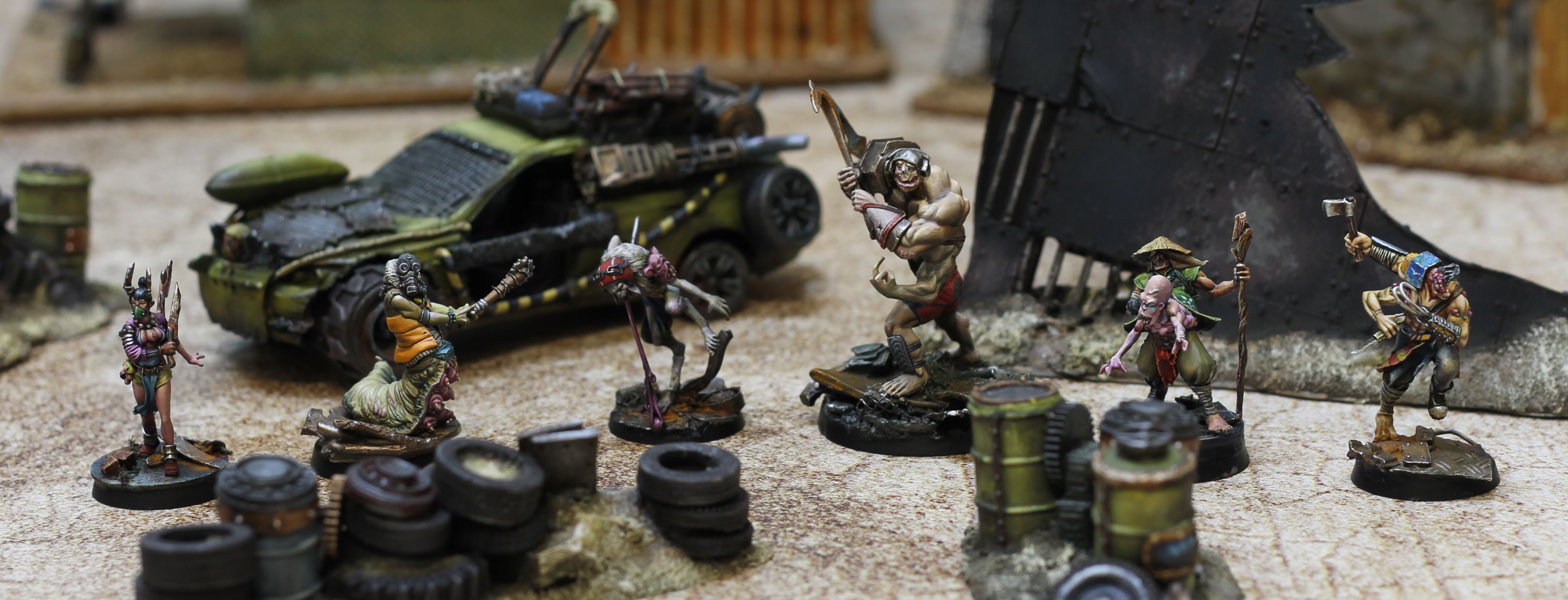 Algunos mutardos son unas criaturas bastante grandes y fuertes, una enorme masa de músculos que a veces alcanza los tres metros de altura… aunque por alguna razón en casi todos los casos, el intelecto no es que no haya acompañado ese crecimiento, sino que sus cerebros parecen haberse vuelto bastante pequeños. En los típicos pozos de peleas que hay en muchos asentamientos, estos mutardos son el tipo de mala bestia que el cacique local suele tener para ganar las apuestas, normalmente tratándolo como algo poco mejor que un esclavo. En las bandas de mutardos, rodeados de gente que también es distinta, podría pensarse que situación es mucho mejor, pero seamos sinceros, son unas criaturas bastante idiotas, que a cambio pegan leches como panes… así que no dudan en lanzarlas hacia los enemigos sin mirar demasiado por su seguridad.