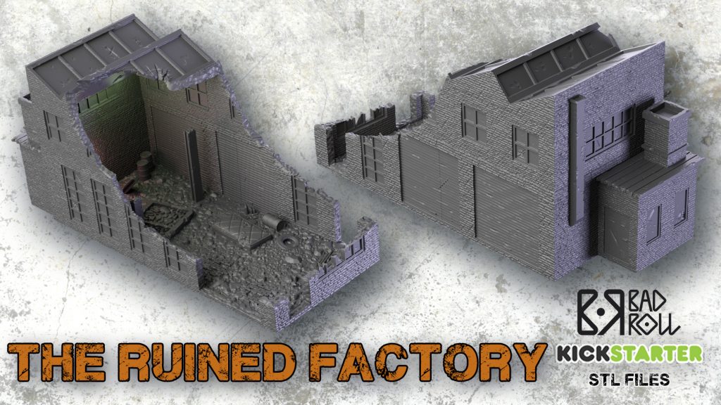 Ya en marcha nuestro nuevo KS de escenografía en STL. Una fábrica en ruinas ideal tanto para Punkapocalyptic como para múltiples juegos y ambientaciones. Sin necesidad de soportes para su impresión, infinidad de detalles y desde solo 6 €