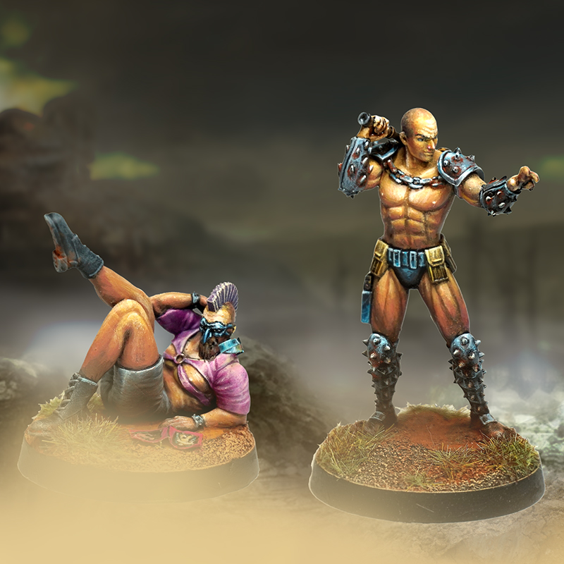 Contiene 2 miniaturas de resina y 2 peanas de plástico de 25 mm.