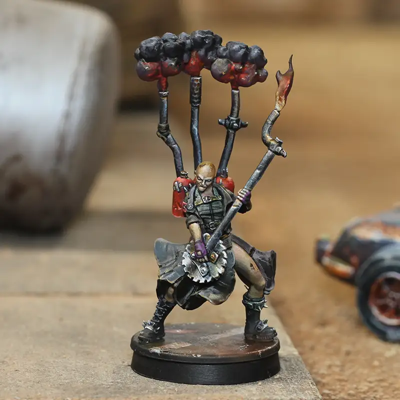 Miniatura con alta calidad y detalle perfecta para usar en la facción de los Hijos de la Sangre Negra del wargame Punkapocalyptic.