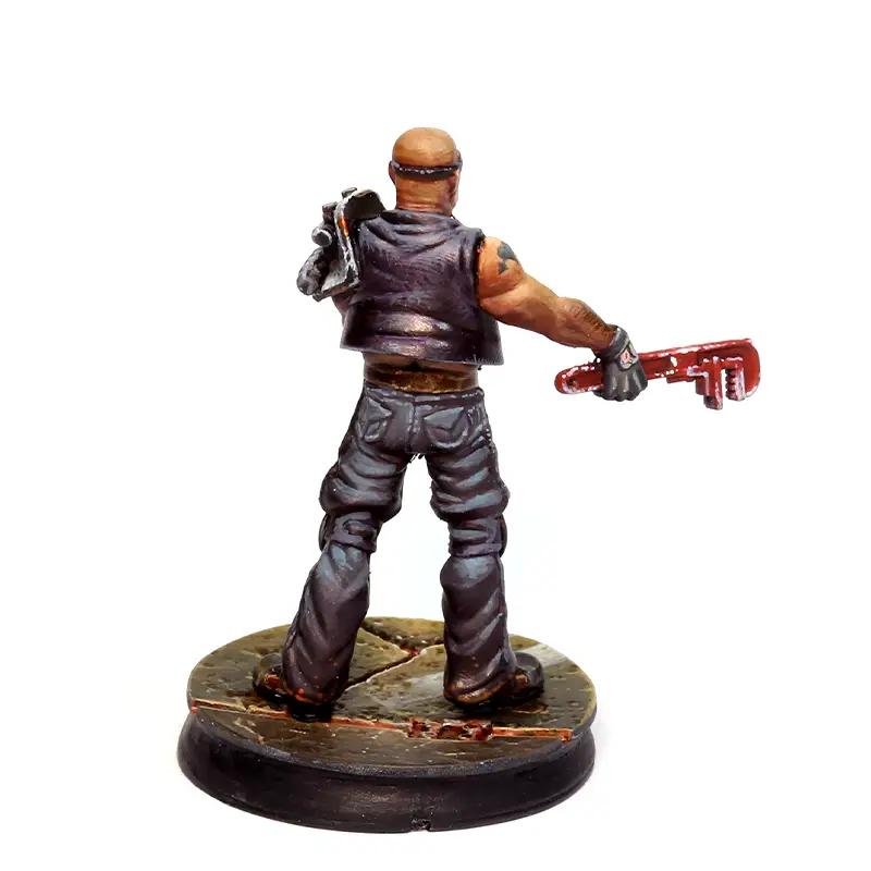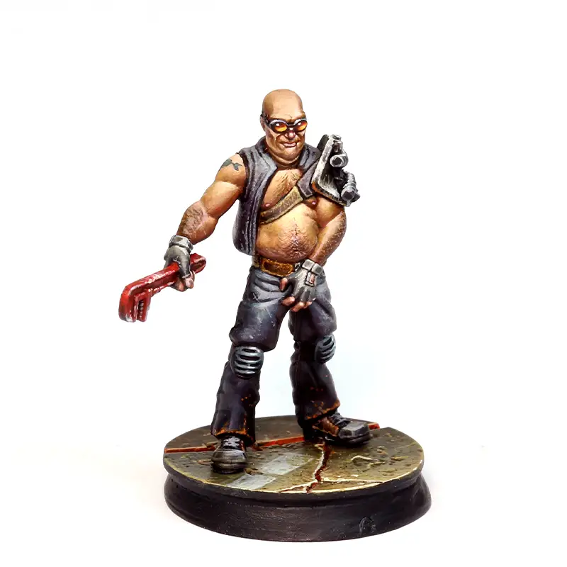Esta miniatura está pensada como un Hijo de la sangre Negra en el juego de miniaturas de Punkapocalyptic, pero puedes usarlo en otras facciones si te encaja, y por supuesto en cualquier otro wargame.
