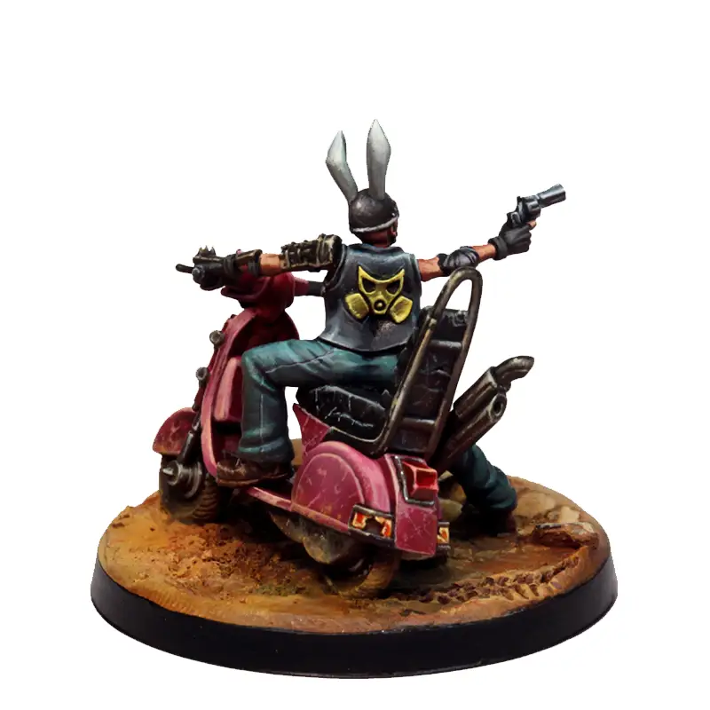 Esta miniatura está pensada como un Hijo de la sangre Negra en el juego de miniaturas de Punkapocalyptic, pero puedes usarlo en otras facciones si te encaja, y por supuesto en cualquier otro wargame.