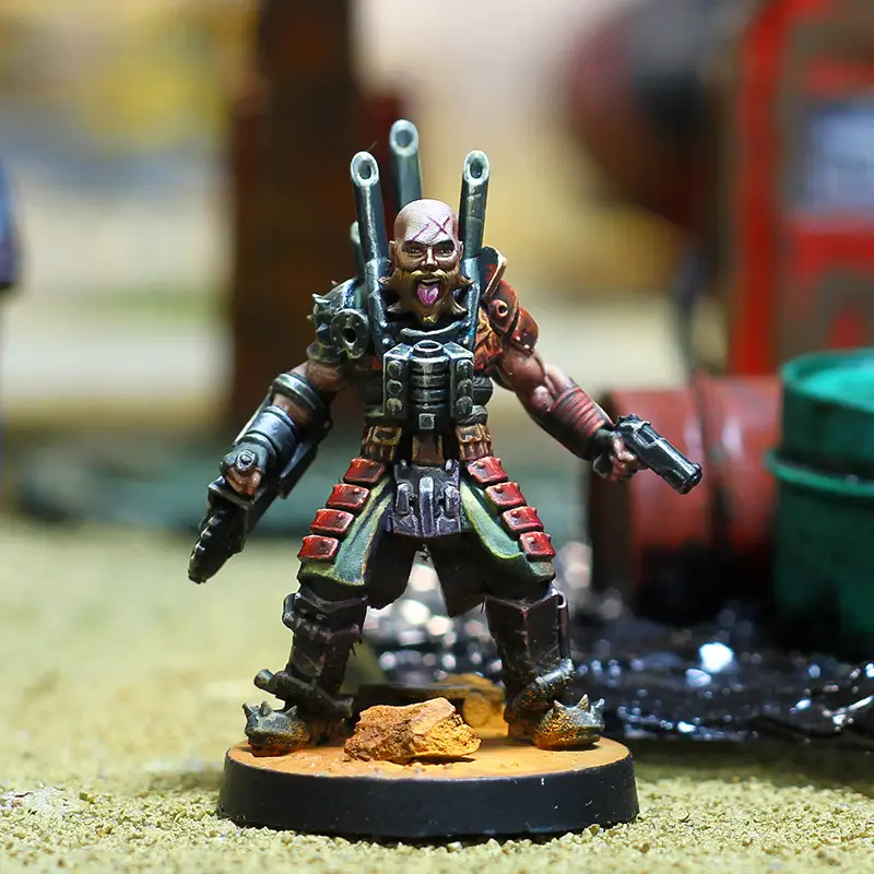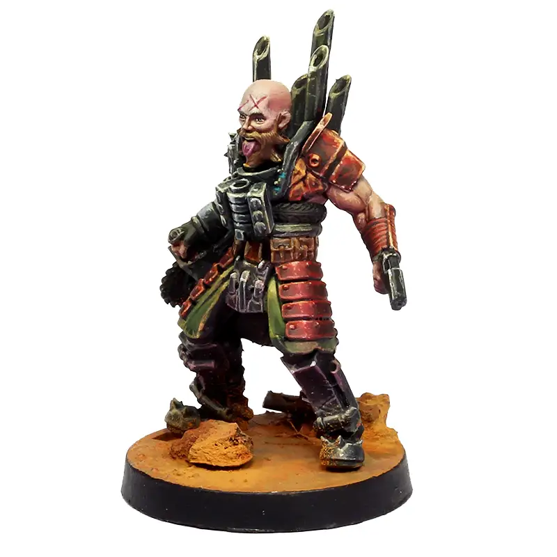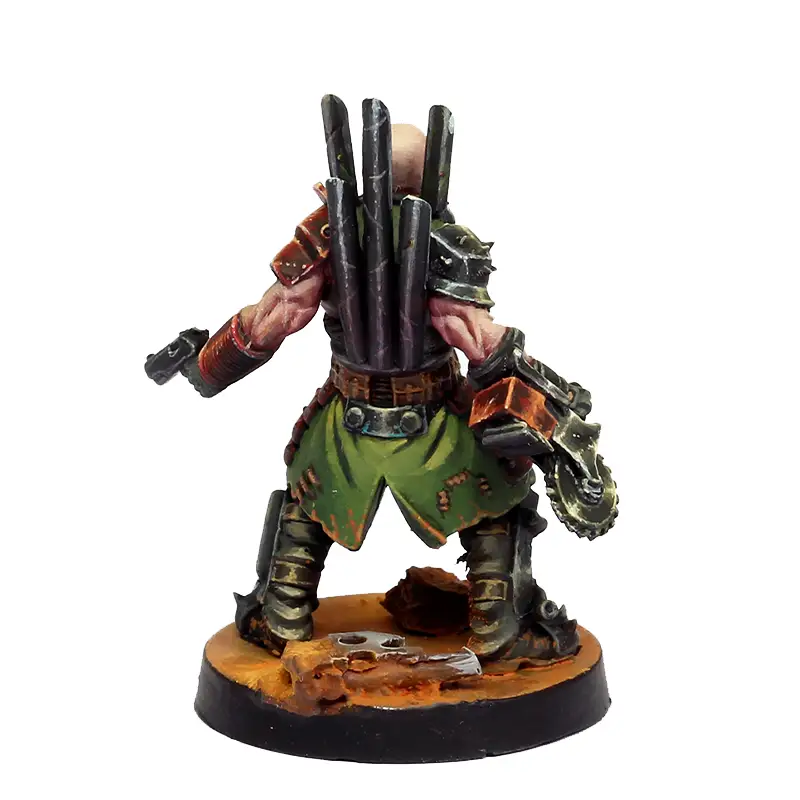 Esta miniatura está pensada como una Personalidad de los Hijos de la sangre Negra en el juego de miniaturas de Punkapocalyptic, pero puedes usarlo en otras facciones si te encaja, y por supuesto en cualquier otro wargame.