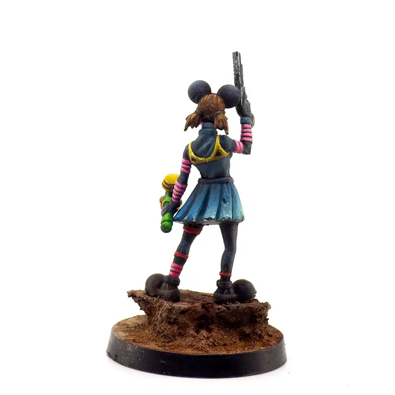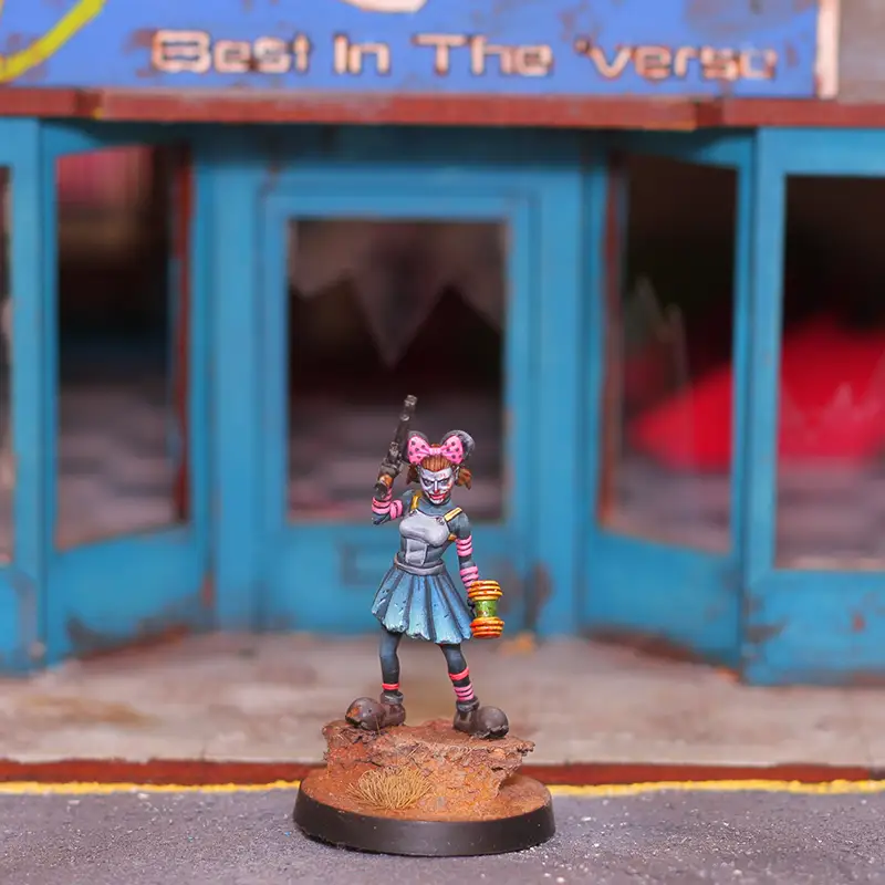 Esta miniatura está pensada como un miembro de la Troupe en el juego de miniaturas de Punkapocalyptic, pero puedes usarlo en otras facciones si te encaja, y por supuesto en cualquier otro wargame.