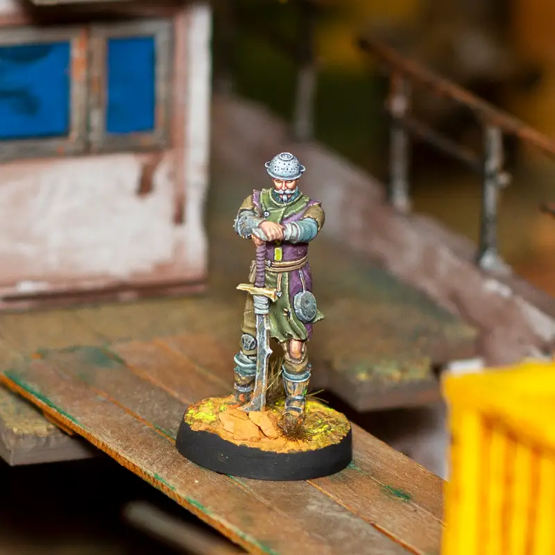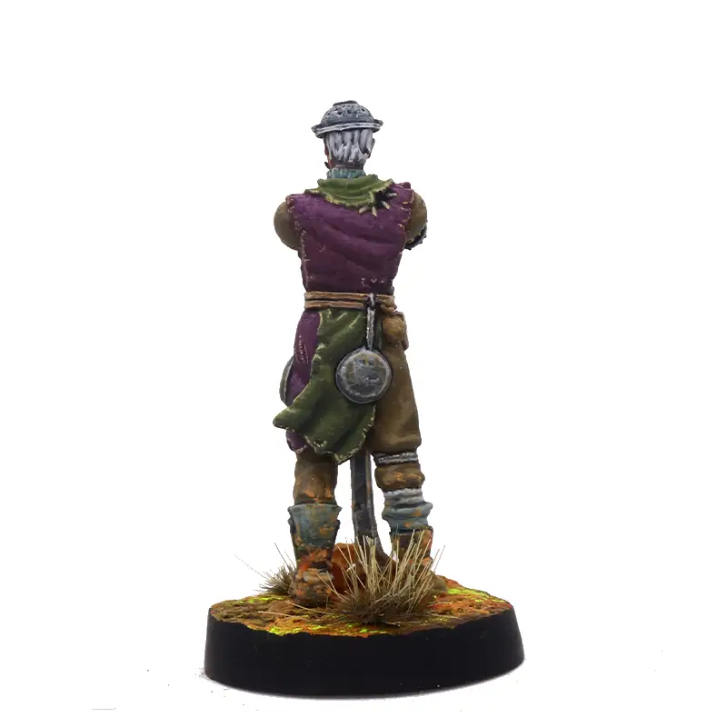El blister incluye la miniatura en cinco piezas sin pintar (trae dos cabezas para que elijas con cuál montarla), junto a su peana correspondiente. Por lo tanto deben pegarse las piezas y a la peana para su uso (se recomienda usar cianocrilato), y por supuesto pintarse si se quiere que se vea en todo su esplendor, lo que es también una parte del hobby.