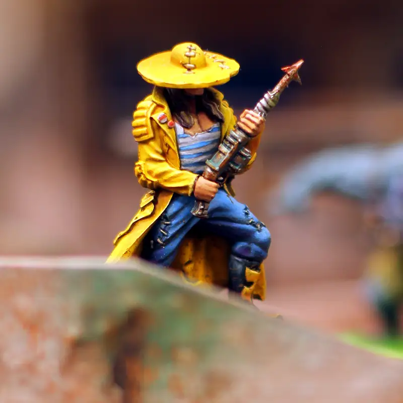 Esta miniatura está pensada como un Chatarrero en el juego de miniaturas de Punkapocalyptic, pero puedes usarlo en otras facciones si te encaja, y por supuesto en cualquier otro wargame.