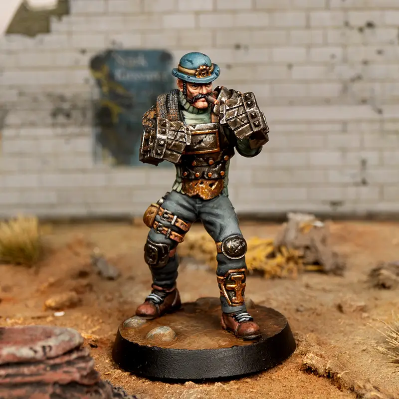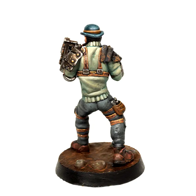 Esta miniatura está pensada como un Chatarrero en el juego de miniaturas de Punkapocalyptic, pero puedes usarlo en otras facciones si te encaja, y por supuesto en cualquier otro wargame.
