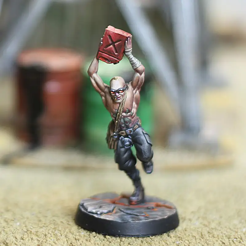 Esta miniatura está pensada como un Hijo de la sangre Negra en el juego de miniaturas de Punkapocalyptic, pero puedes usarlo en otras facciones si te encaja, y por supuesto en cualquier otro wargame.