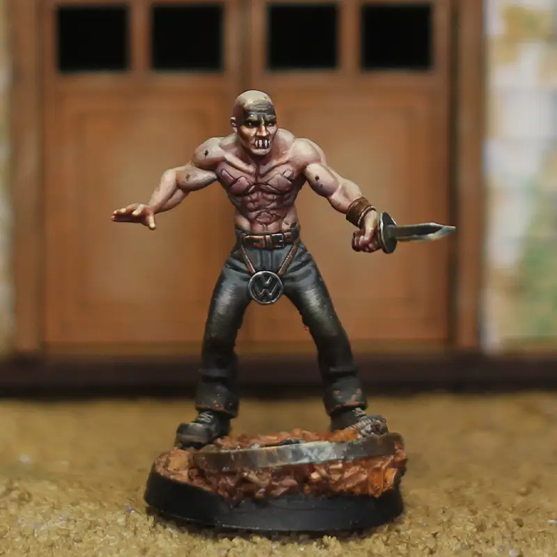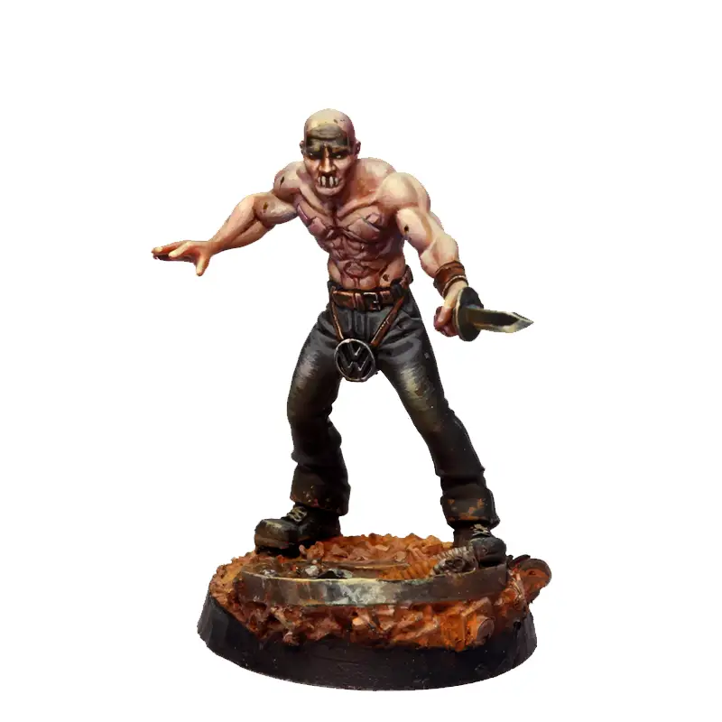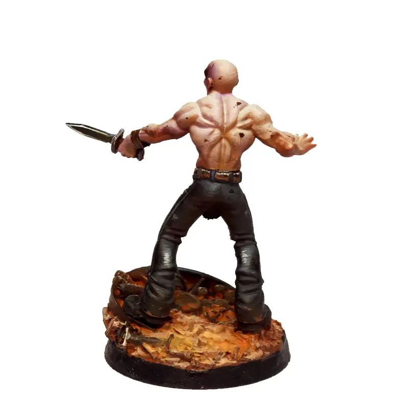 Esta miniatura está pensada como un Hijo de la sangre Negra en el juego de miniaturas de Punkapocalyptic, pero puedes usarlo en otras facciones si te encaja, y por supuesto en cualquier otro wargame.