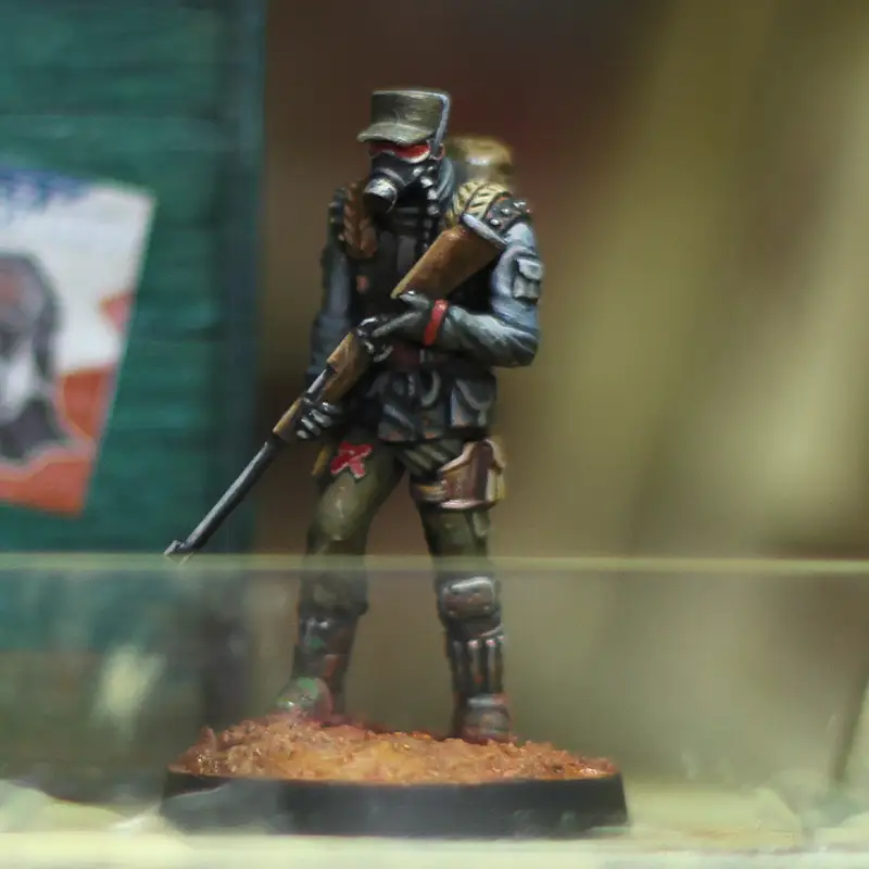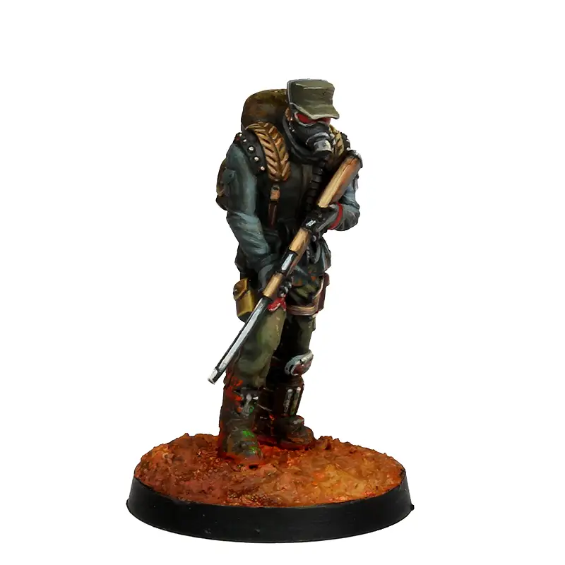 Esta miniatura está pensada como un miembro del V Reich en el juego de miniaturas de Punkapocalyptic, pero puedes usarlo en otras facciones si te encaja, y por supuesto en cualquier otro wargame.